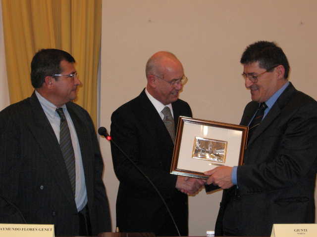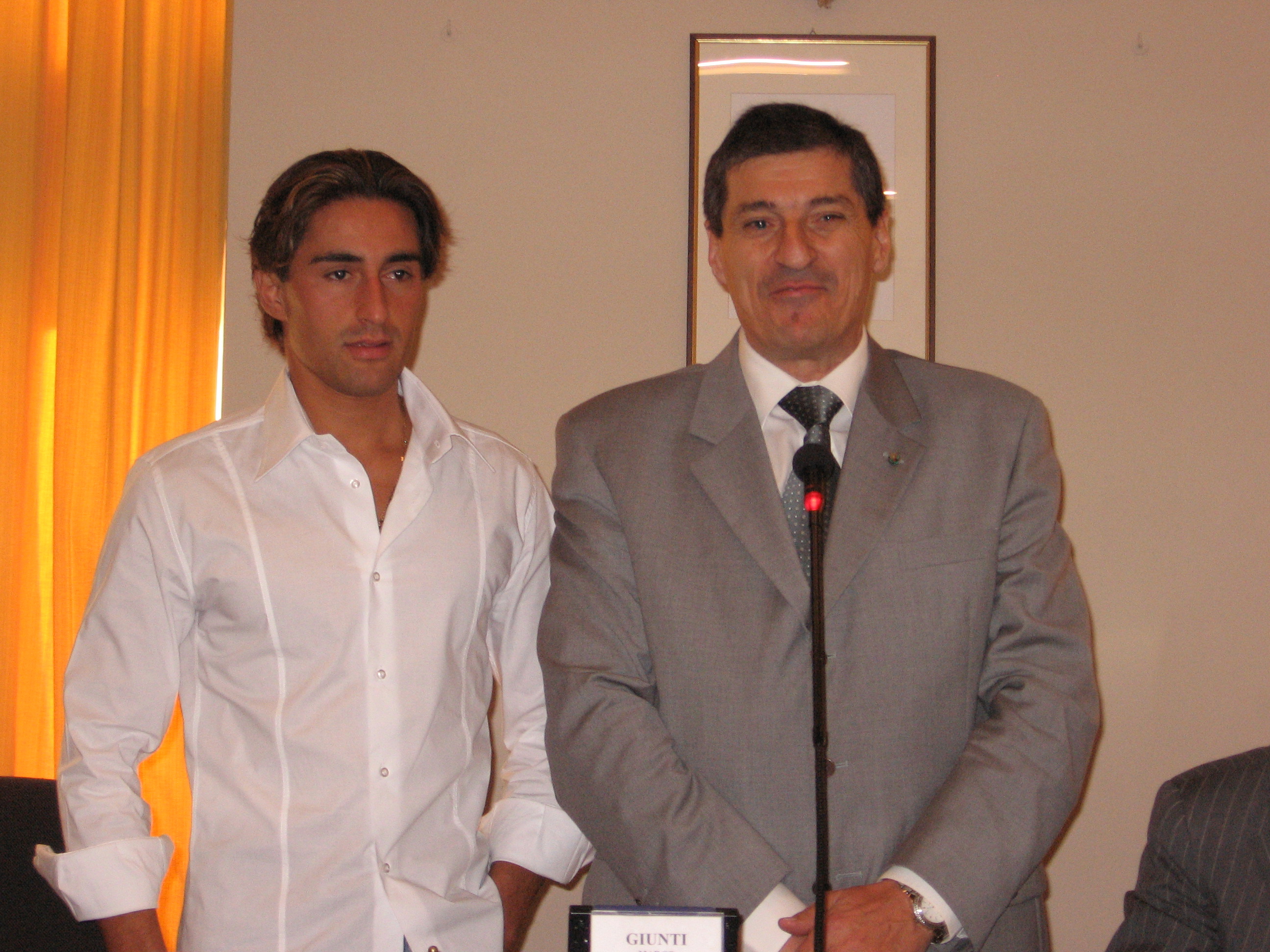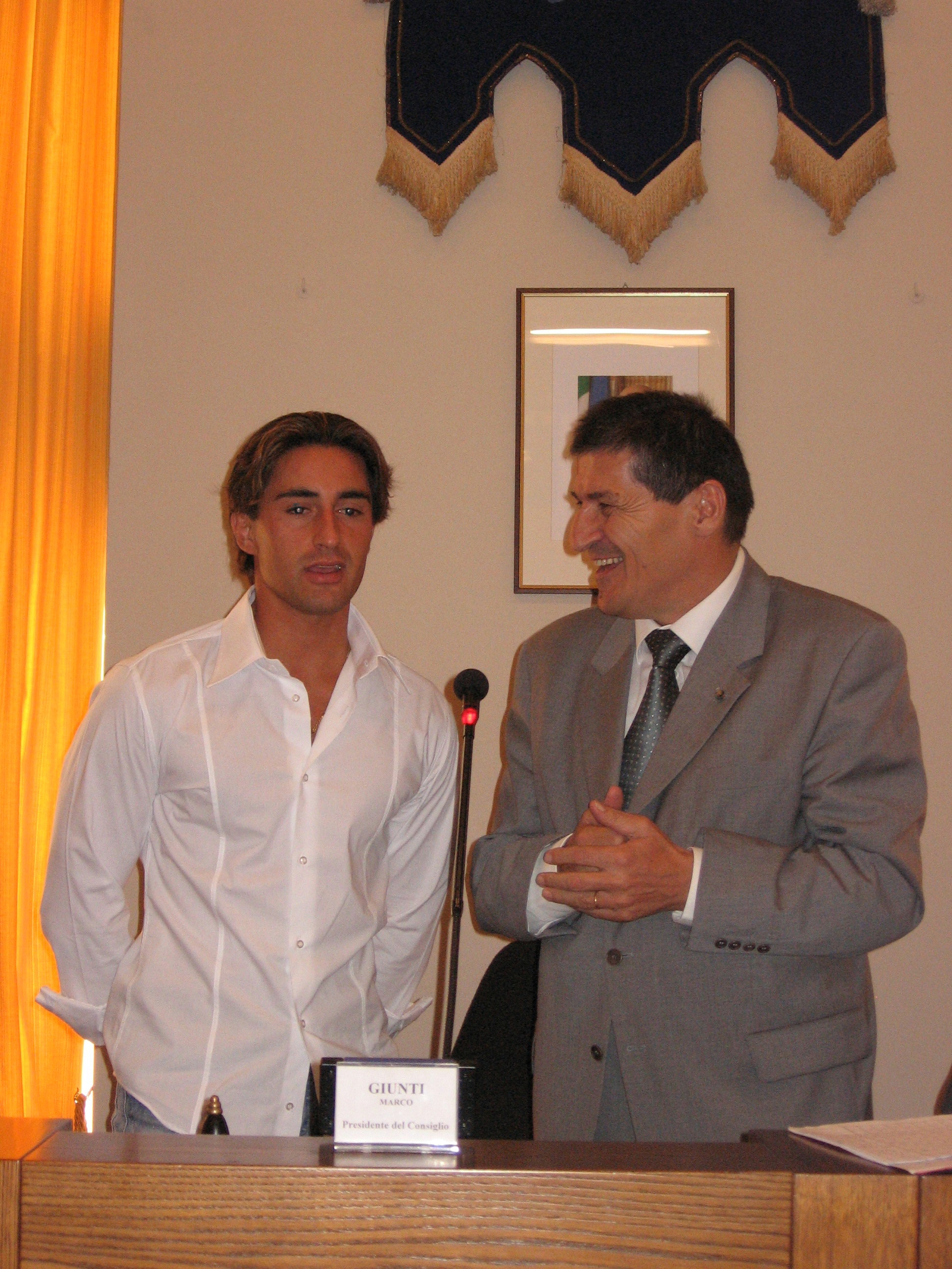 | 25 settembre 2007 Il Presidente del Consiglio Marco Giunti consegna una targa d'onore a Jonatan Bartoletti, vincitore del Palio di Siena |