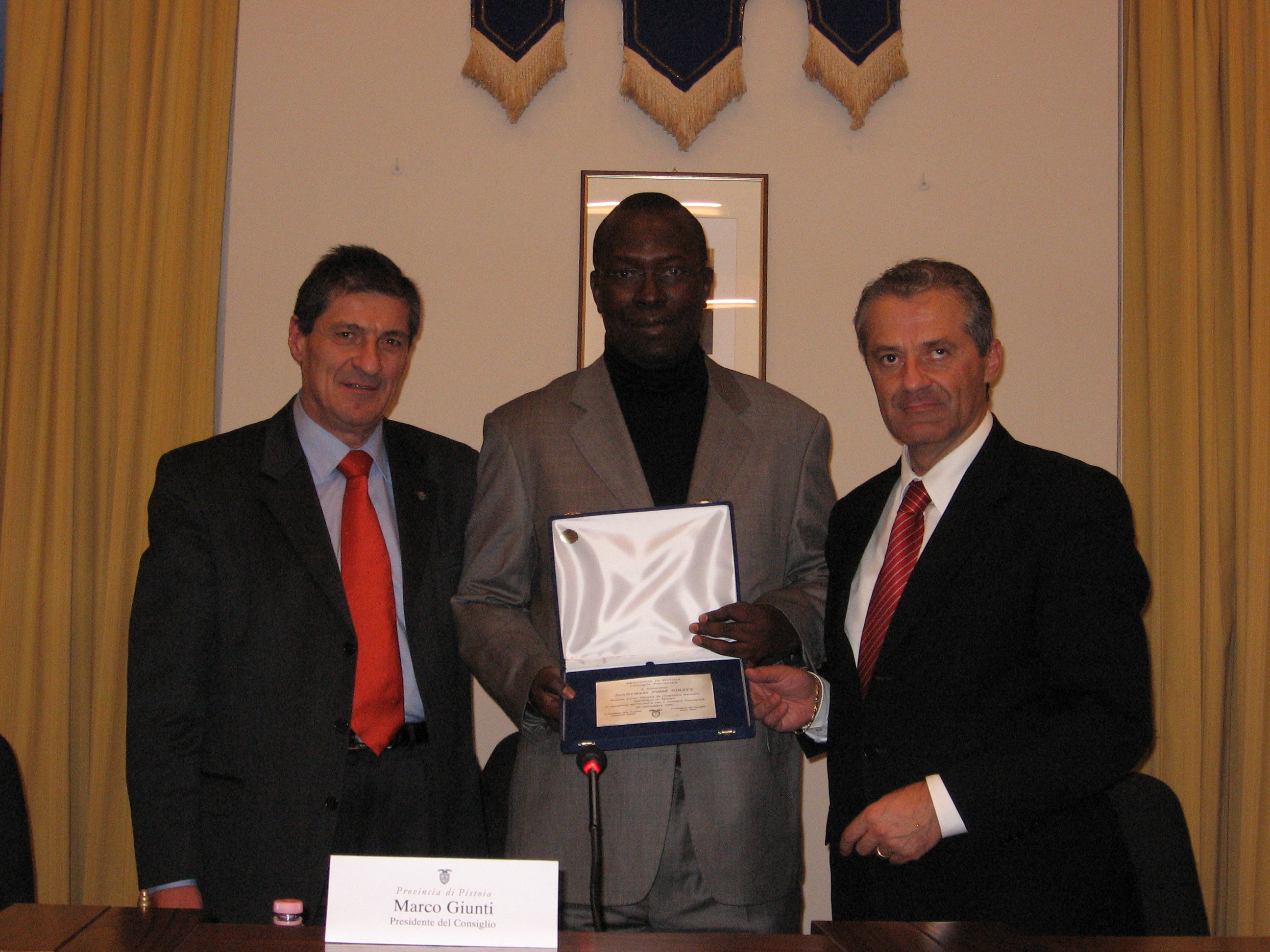 | 20 novembre 2007 Consiglio Provinciale di Pistoia, accoglienza solenne al Ministro dell'Economia Marittima della Repubblica del Senegal Souleymane Ndéné Ndiaye, Palazzo Balì Pistoia |