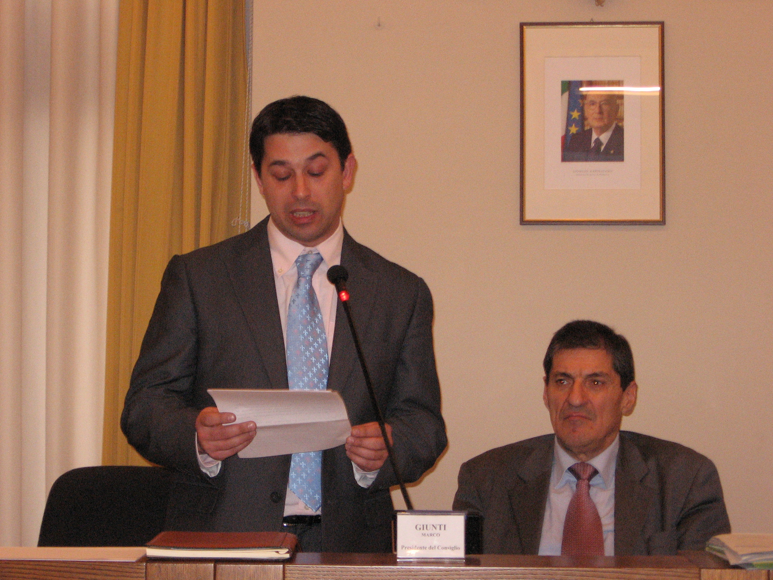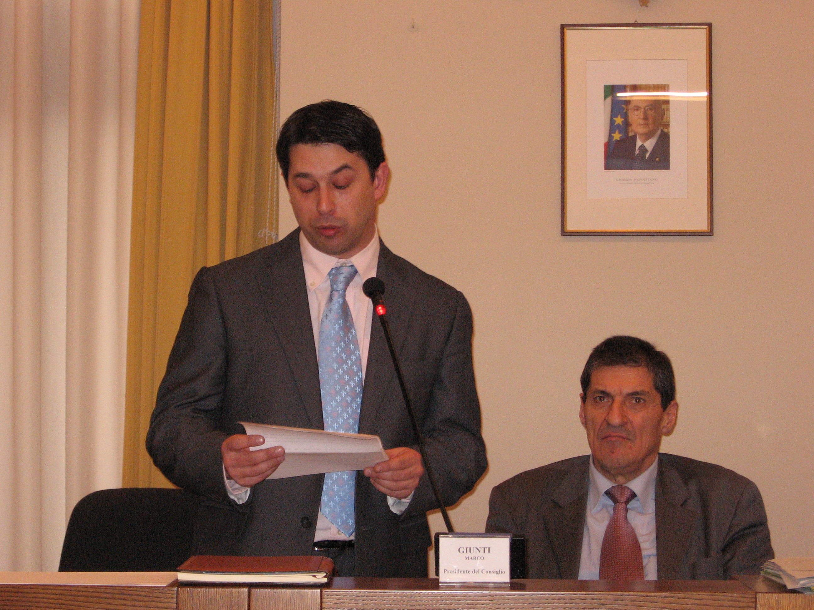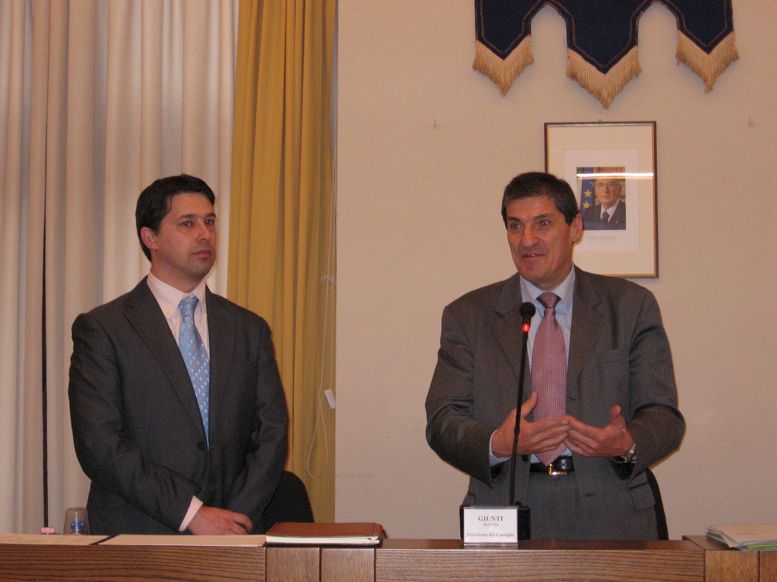 | 5 novembre 2008 Sala consiliare Palazzo Balì, surroga consigliere Lapenna con il consigliere dell'Udc Vinicio Pellegrini" |